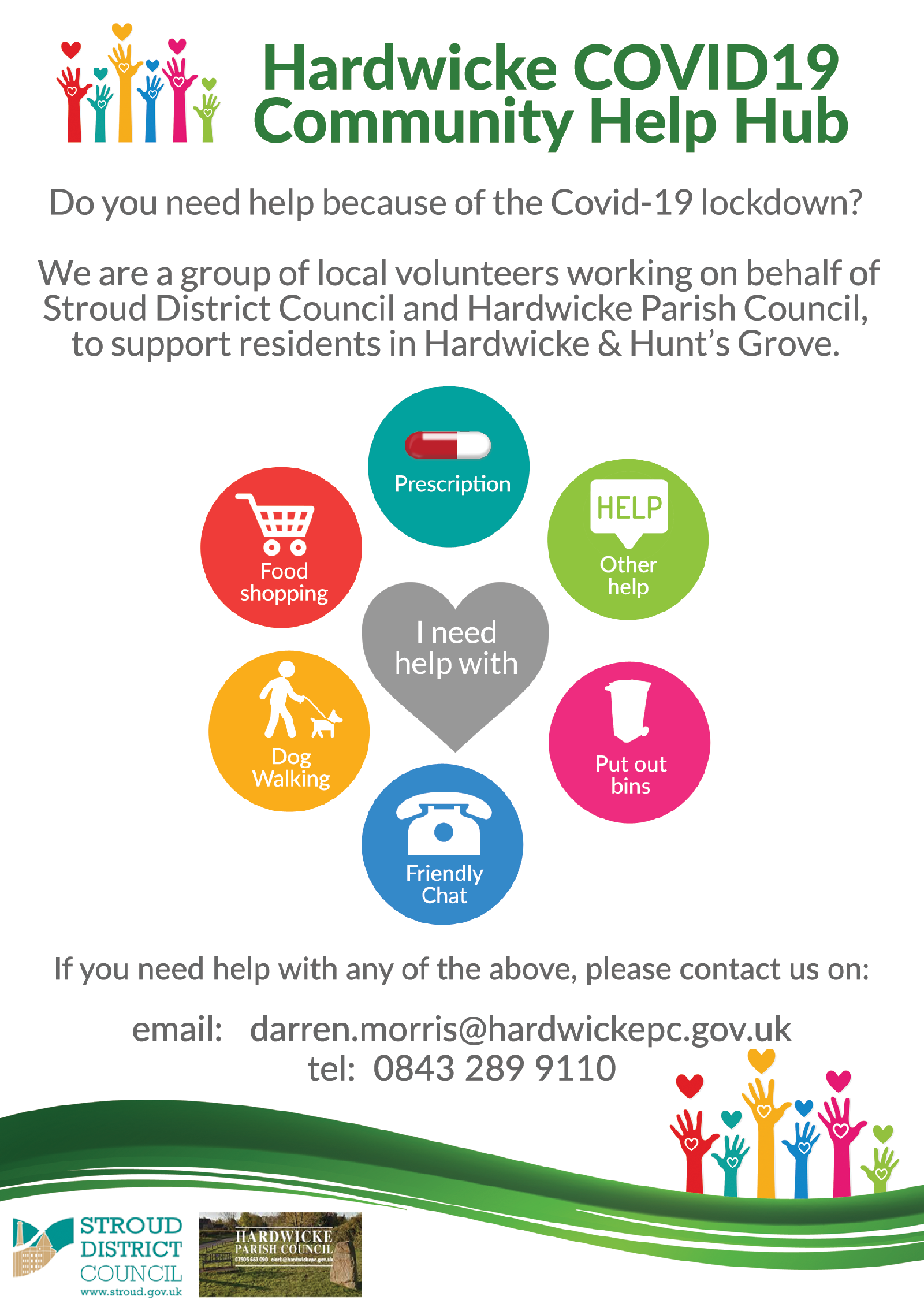 - If you need help or someone you know does please visit the Community Help Hub. People can now register to the county's community help hub by calling 01452 583519 Monday to Friday between 8.30am and 5pm, as well as online.